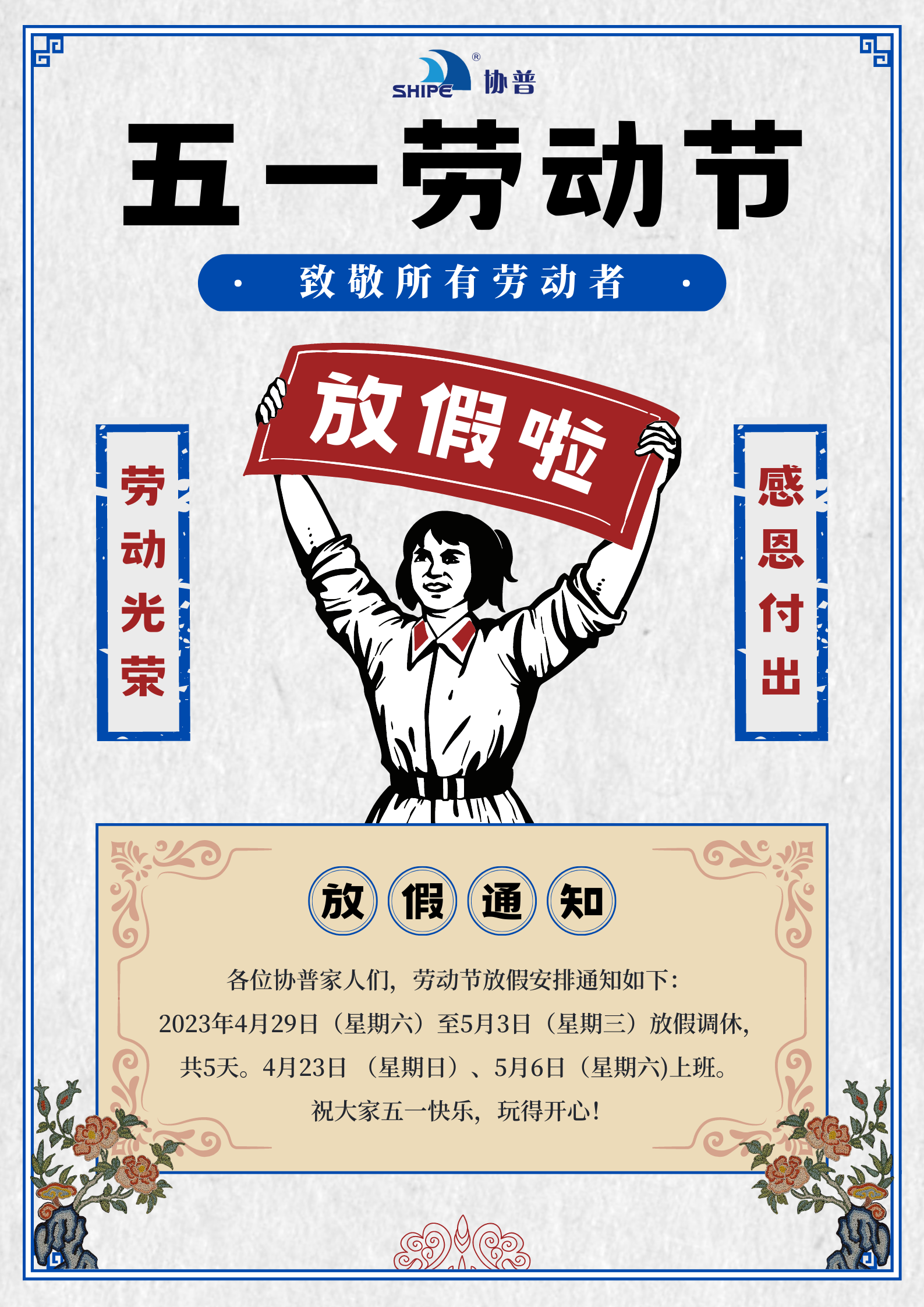 協(xié)普家人們,讓我們工作時(shí)全力以赴,下班后自在浪漫。祝大家擁有一個(gè)愉快的五一小長(zhǎng)假!
