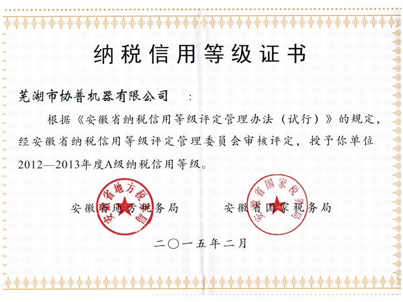 納稅等級(jí)證書